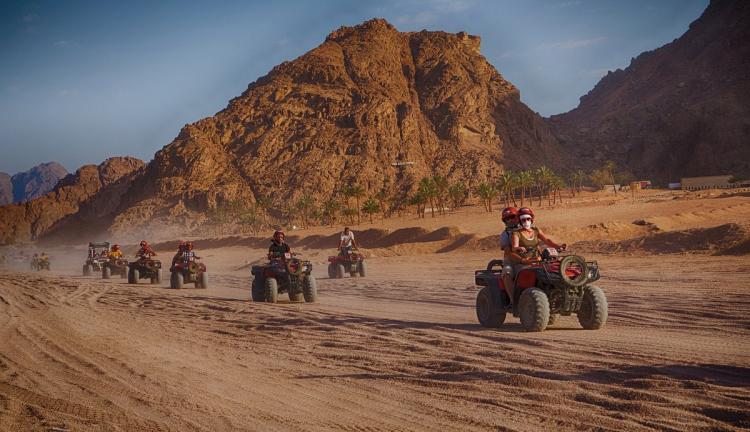 Sina Çölü ve Sıra Dağları; doyumsuz manzaralar sunmaktadır. ATV gezimizde bir de Bedevi kampını ziyaret ederek çölde yaşam ile ilgili bilgiler alabileceksiniz. (Transferler, kask, Bedevi Çayı ikramı dahil, diğer içecekler ve poşu dahil değildir) Bu turumuzda, safari merkezinin göndereceği transfer aracı kullanılarak farklı otellerden müşteriler alınır ve geri bırakılır. Bu turumuzda, yeterli sayı olmadığında Türkçe Rehberimiz sizle birlikte olmaz, tur İngilizce bilen Safari Merkezi personeli ile gerçekleştirilir. Kullanılan sağlayıcı Standart Safari Merkezidir.